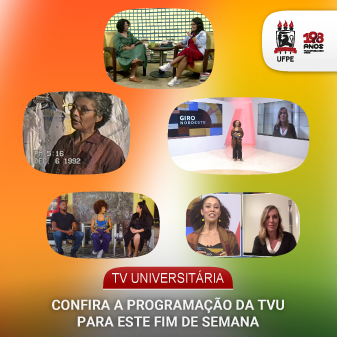 A TV Universitária divulga a programação para este fim de semana e também da segunda-feira (6), quando serão exibidos novos episódios do Cesta Cultural, Giro Nordeste, Papo na Laje, Povo do Livro e Imagem nas Mãos. As atrações podem ser assistidas pelo canal 11.1, via transmissão digital, pelo aplicativo TVUPlay ou pelo canal da TVU no YouTube.