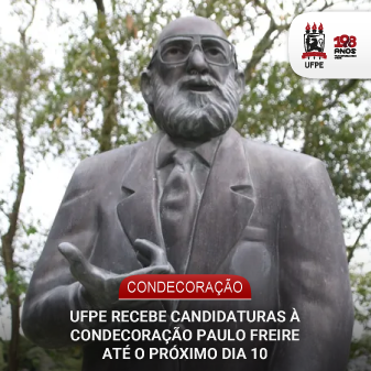- UFPE recebe candidaturas à Condecoração Paulo Freire até o próximo dia 10