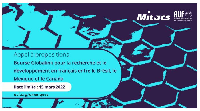 Estão abertas até 15 de março as inscrições do ‘”Bourses Globalink pour la recherche et le développement en français entre le Brésil, le Mexique et le Canada’’, que seleciona discentes para participar de estágios remunerados de pesquisa de 12 a 24 semanas em uma das universidades canadenses membros da Agence universitaire de la Francophonie (AUF). Os selecionados receberão um valor de até 6 mil dólares canadenses para as atividades de pesquisa, além de auxílio passagem e acomodação, e um subsídio para despesas de manutenção.