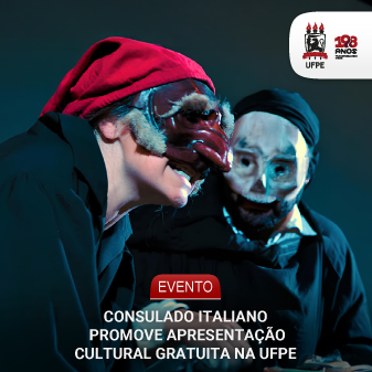 O Consulado da Itália em Recife promove nesta sexta-feira (17), das 10h às 12h, apresentação gratuita da peça Commedia dell’Arte e Spettacolo Masquerade Mask para a comunidade acadêmica da UFPE. A apresentação será realizada no Teatro Milton Baccarelli, localizado no Centro de Artes e Comunicação (CAC), no Campus Recife. Os ingressos para a apresentação podem ser adquiridos pelo link. As vagas são limitadas.