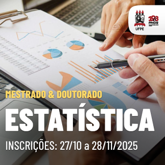 O Programa de Pós-Graduação em Estatística (PPGEst) da UFPE torna público o edital para o processo seletivo de ingresso nos cursos de Mestrado e Doutorado para o primeiro semestre de 2026. As inscrições estão abertas e devem ser feitas até 28 de novembro, exclusivamente pelo Sistema Integrado de Gestão de Atividades Acadêmicas (Sigaa).