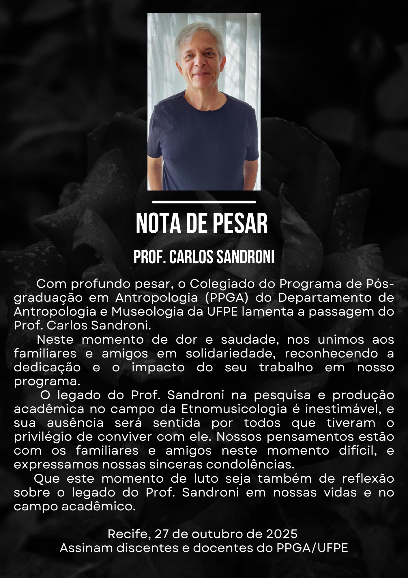 Nota de Pesar: Prof. Dr. Carlos Sandroni