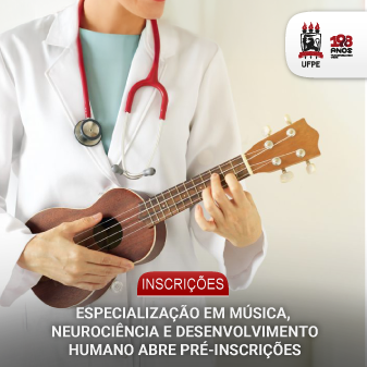 O curso de Pós-Graduação Lato Sensu (Especialização) em Música, Neurociência e Desenvolvimento Humano, do Departamento de Música da UFPE, abre nova turma em 2026, no formato 100% a distância (EAD). Os interessados devem fazer a pré-inscrição por meio de formulário on-line (a confirmação da vaga acontecerá somente mediante a matrícula, que ainda será aberta).