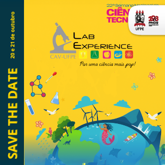 Nos dias 20 e 21 de outubro, o Centro Acadêmico de Vitória (CAV) da UFPE será palco do evento “LAB Experience: por uma ciência mais pop!”, que integra a programação da 22ª Semana Nacional de Ciência e Tecnologia (SNCT). A iniciativa busca aproximar a ciência da comunidade, especialmente dos estudantes da educação básica, de forma lúdica, interativa e acessível, estimulando a curiosidade e o interesse pela pesquisa científica como ferramenta de transformação social e ambiental. As ações ocorrem das 9h às 12h e são voltadas a estudantes, professores e à comunidade em geral. As inscrições podem ser realizadas via formulário on-line.