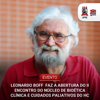 O Hospital das Clínicas da UFPE realiza, no próximo dia 15, o II Encontro do Núcleo de Bioética Clínica e Cuidados Paliativos, com o tema central “A Espiritualidade no Cuidado Integral do Paciente”. A palestra de abertura será ministrada pelo teólogo Leonardo Boff, de forma on-line, das 8h30 às 9h30.
