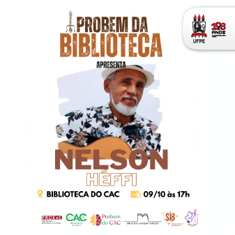 O projeto de extensão Probem do CAC, em parceria com a Biblioteca Joaquim Cardozo, promove apresentação musical com o violonista, cantor, compositor e professor de violão Nelson Héffi nesta quinta-feira (9), às 17h, no salão de estudos da biblioteca, localizada no Centro de Artes e Comunicação (CAC) da UFPE. No evento, Nelson Héffi irá apresentar em voz e violão suas canções autorais com o intuito de trazer uma reflexão sobre o comportamento humano em relação à vida social, à natureza e ao uso das tecnologias. O evento é aberto ao público.