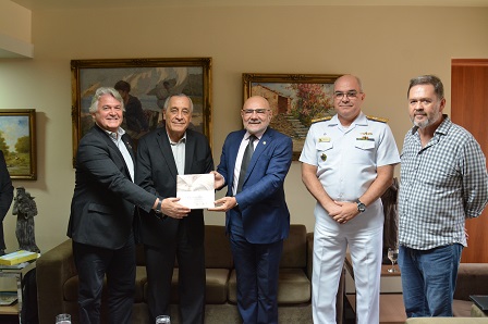 Reitor e vice-reitor recebem o almirante no Gabinete