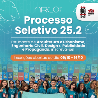 A Arco Consultoria, empresa júnior vinculada à Universidade Federal de Pernambuco (UFPE), está com inscrições abertas para o Processo Seletivo 2025.2. A seleção é voltada para estudantes dos cursos de Arquitetura e Urbanismo, Engenharia Civil, Design e Publicidade e Propaganda. As inscrições podem ser feitas até o dia 16 de outubro, exclusivamente pelo link.