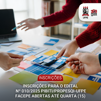 - Inscrições para o edital nº 010/2025 Pibiti/Propesqi-UFPE/Facepe abertas até quarta (15)