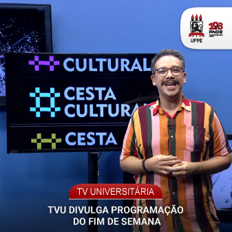 A TV Universitária da UFPE traz mais uma programação repleta de muita música e informação nesta sexta, sábado e também na segunda-feira (dias 10, 11 e 13), com os novos episódios do Cesta Cultural, Giro Nordeste, Papo na Laje, Povo do Livro e do Imagem nas Mãos. As atrações podem ser assistidas pelo canal 11.1, via transmissão digital e pelo aplicativo TVUPlay.
