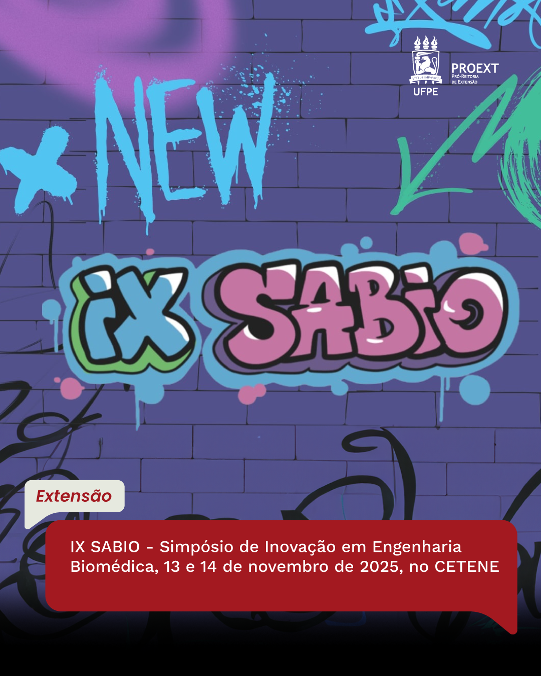 O IX SABIO - Simpósio de Inovação em Engenharia Biomédica é realizado pelo Departamento de Engenharia Biomédica (DEBM/UFPE) e pelo Programa de Pós-graduação em Engenharia Biomédica (PPGEB/UFPE). O evento integra Engenharia Biomédica e ciência aberta com a finalidade de promover saúde e bem-estar por meio da democratização de tecnologias em saúde voltadas ao contexto latino-americano.