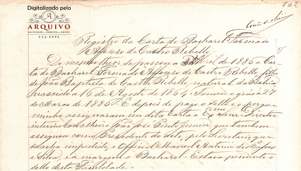 Em 21 de abril de 1902, a congregação da Faculdade Livre de Direito da Bahia, reunida em sessão extraordinária e solene, recebeu o Exmo. Sr. Dr. Clóvis Beviláqua, emérito catedrático da Faculdade de Direito do Recife e autor do projeto do código civil brasileiro, em discussão no congresso nacional, sendo cumprimentado, em nome da congregação, pelo Dr. Affonso Castro Rebello e , no dos alunos, pelo Acadêmico Alfredo de Faria Maia.