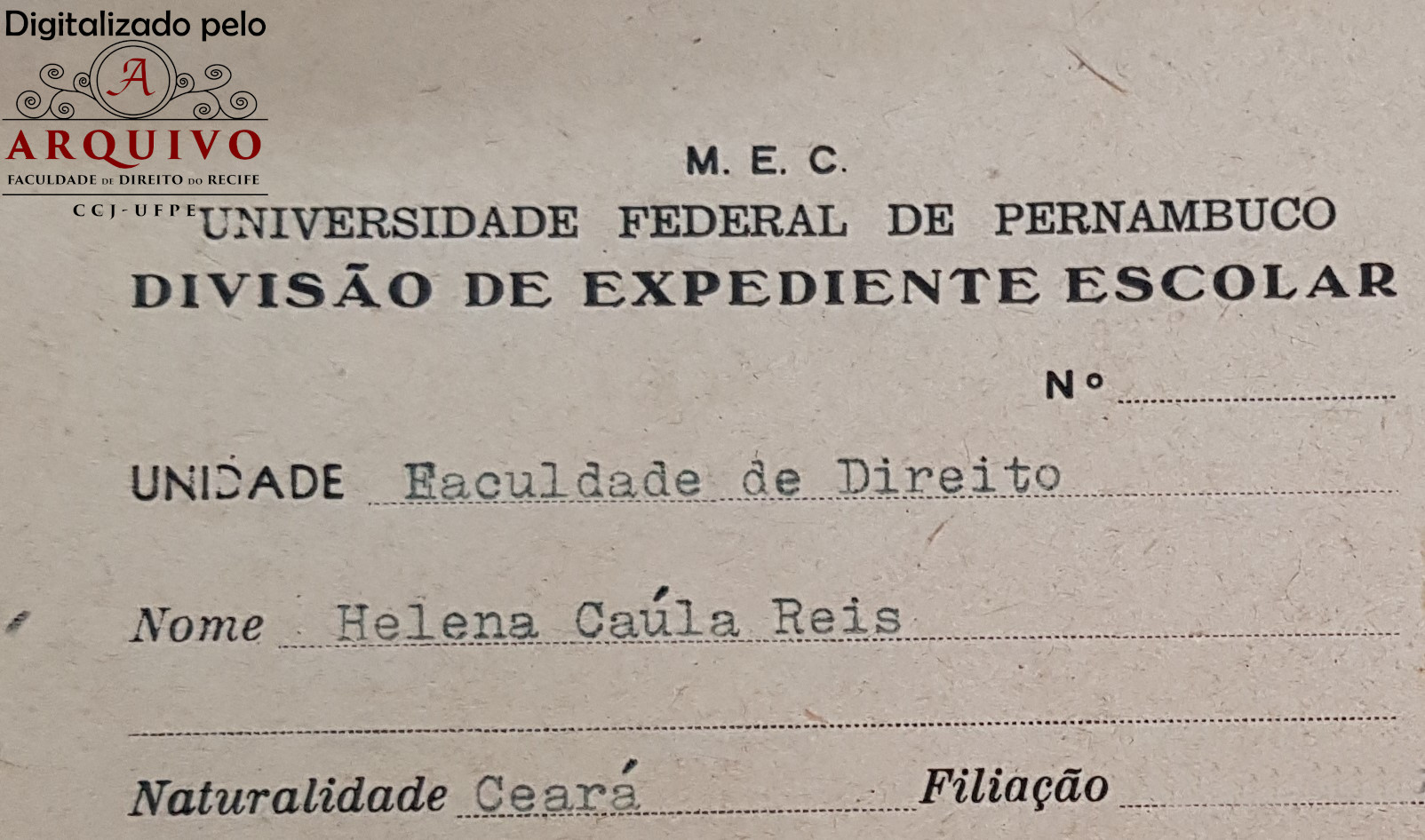 >> Dossiê da aluna Helena Caúla Reis – Graduação - 1967 – Acervo do Arquivo da FDR