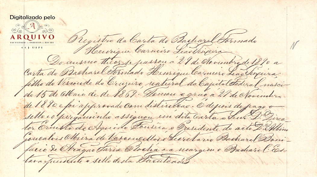 >> Lista geral dos bacharéis e doutores que tem obtido o respectivo grau na Faculdade de Direito do Recife, desde a sua fundação em Olinda, no ano de 1828, até o ano de 1931