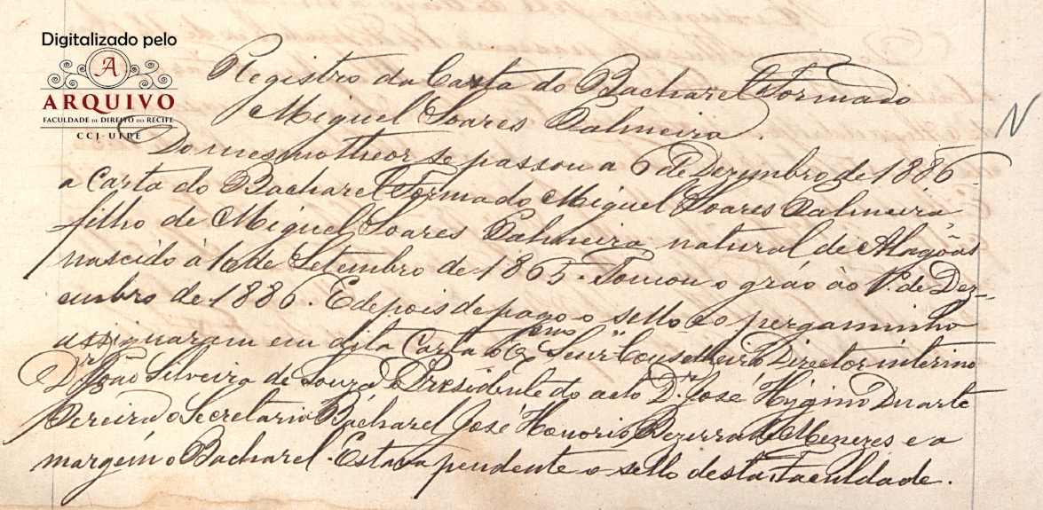 >> Lista geral dos bacharéis e doutores que tem obtido o respectivo grau na Faculdade de Direito do Recife, desde a sua fundação em Olinda, no ano de 1828, até o ano de 1931 – Acervo do Arquivo da FDR