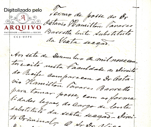 Em 27 de março de 1930, conforme consta no livro de posse, o Ministro de Estados da Justiça e Negócios Interiores, em nome do Presidente da República, atendendo ao que requereu o Dr. Octavio Hamiton Tavares Barretto, professor Catedrático da Faculdade de Direito do Recife, resolve, nos termos do art. 17 de Decreto nº 14663 de 01 de fevereiro de 1921, conceder-lhe 6 meses de licença para tratamento da saúde, devendo entrar no gozo da mesma dentro do prazo de 20 dias.