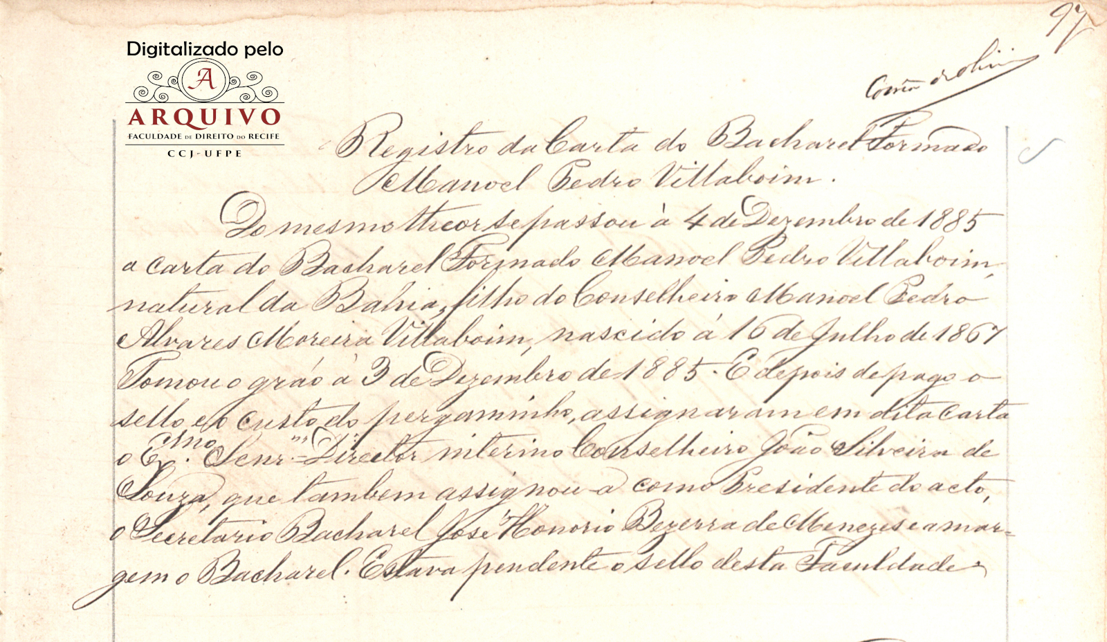 >> Livro de Registro de diplomas de bacharéis (1881 - 1894) – Acervo do Arquivo da FDR