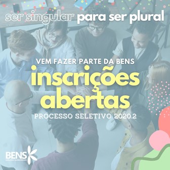 Podem participar do processo seletivo estudantes de todos os cursos da Universidade, desde que estejam com a matrícula regularizada. Mais informações sobre inscrições, dúvidas e esclarecimentos sobre a empresa júnior podem ser obtidas por meio dos perfis do Instagram Bens Soluções Sustentáveis e P. S. Bens.