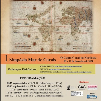 O Grupo de Pesquisa Mar de Corais, do Centro de Artes e Comunicação (CAC), promove o I Simpósio Mar de Corais – O canto coral no Nordeste. O evento, que vai ser realizado de 9 a 12 de dezembro, abre processo de submissão de trabalhos até o dia 25 de outubro. As inscrições devem ser feitas por meio de preenchimento de formulário on-line disponível no edital de seleção e em seu site. As pesquisas a serem submetidas podem ser realizadas em formato escrito ou em vídeo, e devem contemplar a temática da música em contextos vocais coletivos e diálogos com suas áreas.