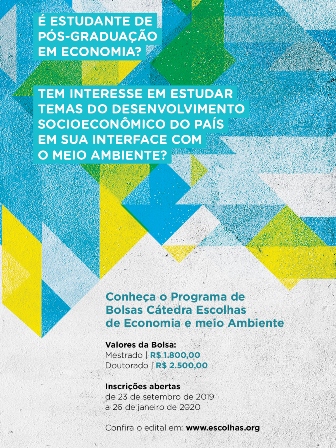 - Inscrições para o Programa de Bolsas da Cátedra Escolhas de Economia e Meio Ambiente vão até o dia 26 deste mês