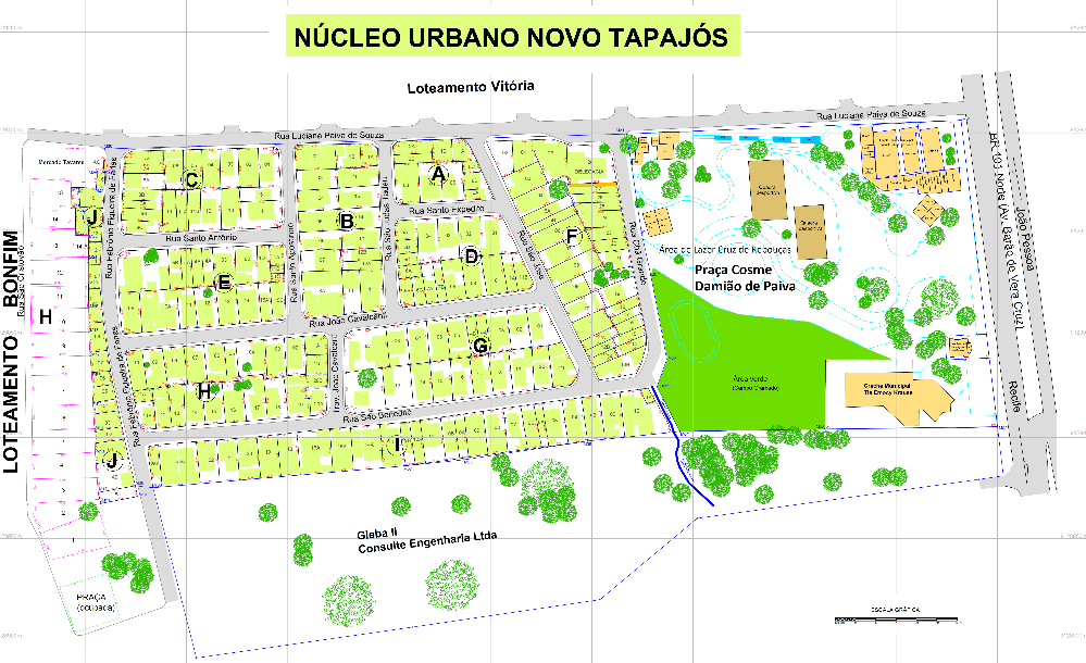 Chamada de Nucleo Urbano Novo Tapajós, a área inclui, além do Loteamento Tapajós, a legalização da Praça Cosme Damião de Paiva (conhecida como Praça Cruz de Rebouças), da Escola Municipal Josuel Roberto de Souza, da Creche Municipal Tia Emocy Krause, do Núcleo de Segurança do Bairro e da Delegacia Cruz de Rebouças. Mais dois locais devem ser contemplados até o final do ano pelo projeto: os loteamentos Posto de Monta e Manancial.