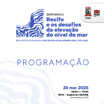 Na semana em que se comemora o Dia Mundial da Água, a Universidade Federal de Pernambuco (UFPE) sedia o seminário “Recife e os desafios da elevação do nível do mar”. O evento ocorre no dia 26 de março, das 13h30 às 17h30, no auditório do Centro de Estudos e Ensaios em Risco e Modelagem Ambiental (Ceerma). O público-alvo são profissionais e estudantes das áreas de oceanografia, geografia e arquitetura e urbanismo, bem como o público em geral. As inscrições são gratuitas e podem ser feitas por meio do link.