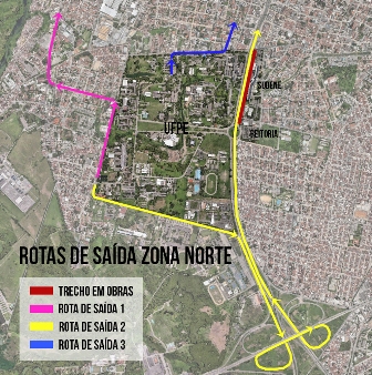 A saída do Campus com destino à zona sul da cidade não sofrerá interferência direta. Poderá ser realizada através da BR-101 ou através da Avenida Professor Luiz Freire (face sul do campus).