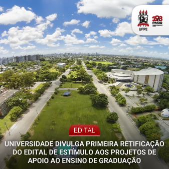 A Universidade Federal de Pernambuco (UFPE), por intermédio da Pró-Reitoria de Graduação (Prograd), torna pública a primeira retificação do Edital nº 08/2026 – Estímulo aos Projetos de Apoio ao Ensino de Graduação (publicado no Boletim Oficial da UFPE de 23 de fevereiro de 2026). Com a retificação, a data limite para a submissão de projetos via Sipac passa a ser 30 de março. O edital tem, entre seus objetivos, o estímulo de iniciativas que promovam o aumento do sucesso acadêmico dos estudantes dos cursos de graduação da UFPE.