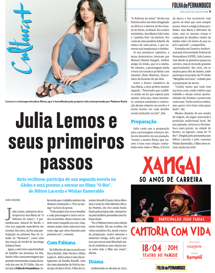 Folha de Pernambuco - Julia Lemos e seus primeiros passos