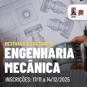 O Programa de Pós-Graduação em Engenharia Mecânica (PPGEM) da Universidade Federal de Pernambuco (UFPE) torna público o edital do processo seletivo de ingresso nos cursos de Mestrado e Doutorado. As inscrições devem ser realizadas de 17 de novembro a 14 de dezembro, por meio do Sigaa.
