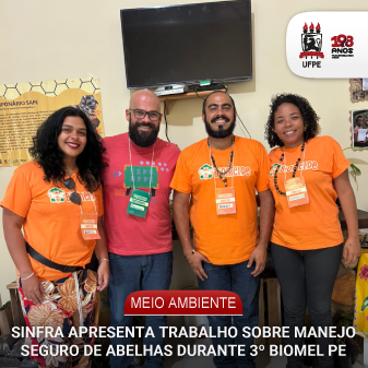 A Superintendência de Infraestrutura (Sinfra) da UFPE, por meio da Diretoria de Meio Ambiente (DMA), marcou presença no 3º Encontro da Bioeconomia do Mel de Pernambuco, realizado nos dias 6 e 7 de novembro, em Triunfo, município do sertão pernambucano. O evento reuniu pesquisadores, produtores e instituições engajadas na valorização da apicultura e na preservação de polinizadores nativos e exóticos.