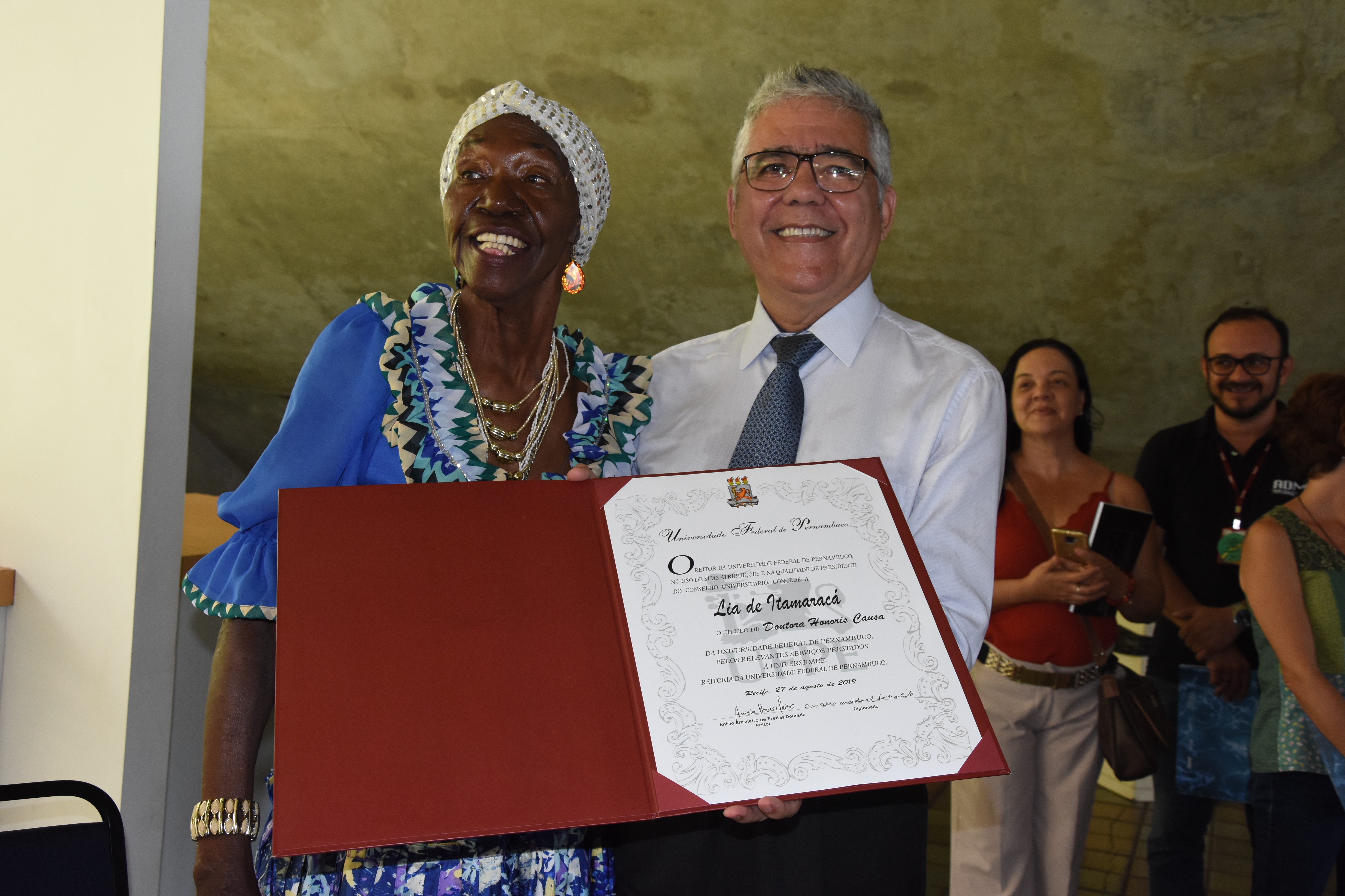 A Pró-Reitoria de Extensão e Cultura (Proexc) acolheu o requerimento do coletivo de docentes lotados nos Centros de Artes e Comunicação (CAC), de Ciências Jurídicas (CCJ), Biociências (CB), Acadêmico de Vitória (CAV), Filosofia e Ciências Humanas (CFCH), Ciências da Saúde (CCS) e Ciências Médicas (CCM), e deu parecer de mérito que ensejou a aprovação pelo Conselho Universitário (Consuni) da UFPE, no último dia 09 de agosto de 2019 da outorga do título de Doutor Honoris Causa a Maria Madalena Correia do Nascimento, mais conhecida como Lia de Itamaracá.