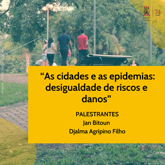Com o tema “As cidades e as epidemias: desigualdade de riscos e danos”, o evento é gratuito, aberto ao público e conta com a participação do professor Jan Bitoun, doutor em Geografia Humana e Organização do Espaço pela Universidade de Paris I Pantheón-Sorbonne; e do professor e pesquisador do Núcleo de Saúde Pública (Nusp) do PPGSC/UFPE e do Instituto Aggeu Magalhães Fundação Oswaldo Cruz, Djalma Agripino Filho.