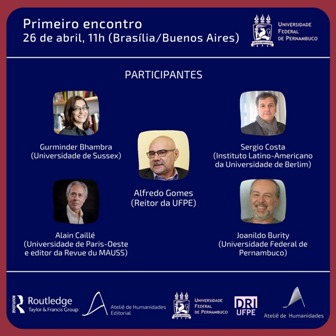 Participarão também o autor da obra, Paulo Henrique Martins; Gurminder Bhambra (Universidade de Sussex e presidente da Associação Britânica de Sociologia, Inglaterra); Sergio Costa (Instituto Latino-Americano da Universidade de Berlim, Alemanha); Alain Caillé (professor emérito da Universidade de Paris-Oeste/editor da Revue du MAUSS/líder do Mouvement Anti-utilitariste en sciences sociales, França); e Joanildo Burity (pesquisador da Fundação Joaquim Nabuco de Pesquisas /professor do Programa de Pós-Graduação em Sociologia da UFPE, Brasil). As inscrições são feitas no site do evento.