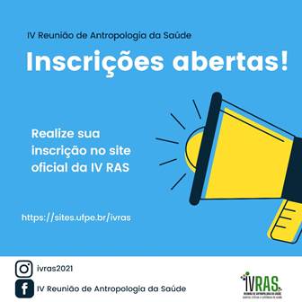 As inscrições para a IV Reunião de Antropologia da Saúde (RAS), que será realizada de 22 a 24 de setembro, estão abertas. Com o tema “Eventos Críticos e Cotidianos de Saúde” o evento busca dar visibilidade aos eventos de saúde global e locais como pandemias, epidemias e seus impactos na vida e nas políticas públicas de saúde, assim como eventos cotidianos relacionados ao campo da antropologia da saúde, a partir de diálogo entre pesquisadores, acadêmicos, estudantes, gestores públicos e movimentos sociais.