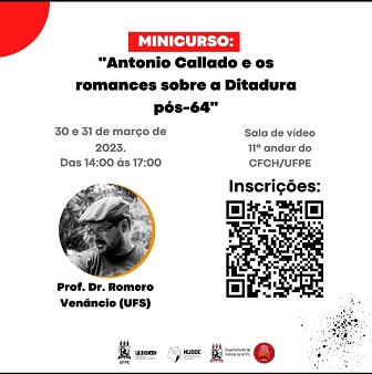 O Núcleo de Documentação sobre os Movimentos Sociais (Nudoc) da UFPE) realiza, nos dias 30 e 31 deste mês, das 14h às 17h, o minicurso “Antonio Callado e os romances sobre a Ditadura pós-64”, ministrado pelo professor Romero Venâncio, do Departamento de Filosofia da Universidade Federal de Sergipe, vinculado aos Programas de Pós-Graduação em Filosofia e Interdisciplinar em Cinema (PPGECINE) na mesma instituição. A obra do jornalista retrata a atuação de camponeses, religiosos, indígenas, militantes, dentre outros, no contexto prévio ao golpe de 1964, e sob o governo ditatorial que se ergueu na sequência. A atividade acontecerá na Sala de Vídeo do 11º andar do Centro de Filosofia e Ciências Humanas (CFCH).