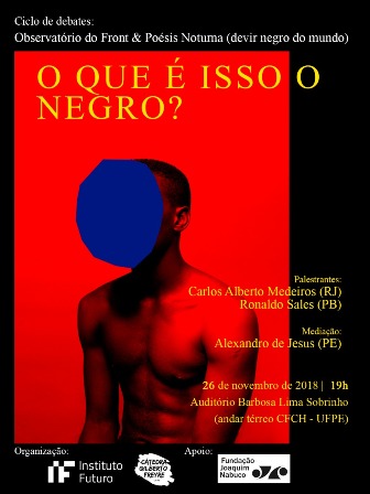 “O que é isso o negro?” é tema do debate que o Instituto Futuro da Universidade Federal de Pernambuco (UFPE) organiza na segunda-feira (26), às 19h, no Auditório Barbosa Lima Sobrinho, no térreo do Centro de Filosofia e Ciências Humanas (CFCH). Realizado em parceria com a Cátedra Gilberto Freyre e com o apoio da Fundação Joaquim Nabuco (Fundaj), o evento faz parte do ciclo de debates “Observatório do Front & Poésis Noturna (devir negro do mundo)”.