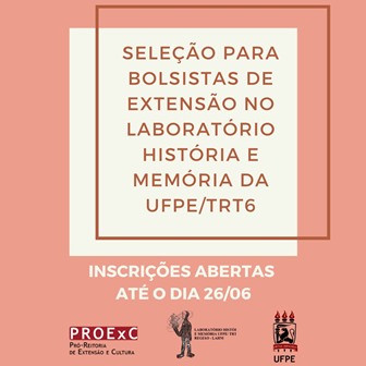 O Laboratório História e Memória (LAHM) da Universidade Federal de Pernambuco (UFPE), projeto com o Tribunal Regional do Trabalho da 6ª Região (TRT6), está selecionando três bolsistas para o projeto de extensão Oficinas de História, voltado para escolas públicas e particulares e turmas de graduação. As oficinas acontecem a partir dos processos trabalhistas arquivados no LAHM. A inscrição pode ser feita até as 17h de amanhã (26).
