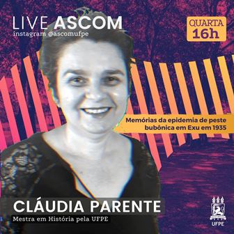 Você sabia que o município de Exu, no Sertão de Pernambuco, foi assolado pela peste bubônica em 1935? É provável que não. Este fato, até recentemente sem registro na história oficial local, será abordado na live de amanhã (26), às 16h, no Instagram da Ascom. A jornalista Vitória Galvão vai conversar com a jornalista e mestra em História Cláudia Parente, que defendeu, na última segunda-feira (24), sua dissertação sobre o tema, que suscita reflexões em tempos de pandemia da Covid-19.