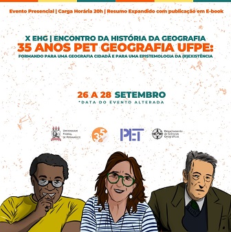 O Programa de Educação Tutorial - PET Geografia da UFPE anuncia que estão abertas as inscrições para o X EHG – Encontro da História da Geografia. O evento vai acontecer de maneira presencial na UFPE com o tema geral “Formando para uma geografia cidadã e para uma epistemologia da (R)existência.” O encontro, que ocorrerá de 26 a 28 de setembro, marca também a comemoração dos 35 anos do PET Geografia.