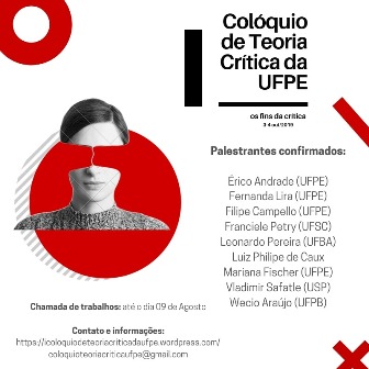 Fruto de uma parceria entre os Programas de Pós-Graduação em Direito e Filosofia, o I Colóquio de Teoria Crítica da Universidade Federal de Pernambuco (UFPE) será realizado nos dias 3 e 4 de outubro. Além da própria filosofia, o colóquio abre também para contribuições de áreas como sociologia, arte, psicologia, história, direito, teoria política, dentre outros. A chamada de trabalhos está aberta até 9 de agosto.
