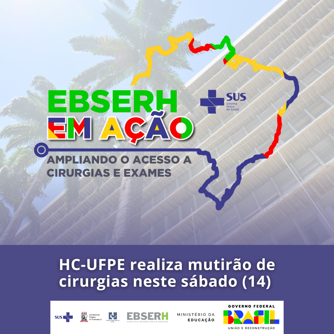 O Hospital das Clínicas da Universidade Federal de Pernambuco (HC-UFPE), vinculado à Empresa Brasileira de Serviços Hospitalares (Ebserh), realiza no sábado (dia 14), das 8h às 16h, mutirão de 20 cirurgias, sendo 13 oncológicas de pequeno porte, duas plásticas (mamoplastias em pacientes trans) e cinco cirurgias de médio porte pela equipe de Cirurgia Geral. A ação, conhecida como “Dia E”, fará parte da mobilização nacional “Ebserh em Ação”, que envolveu 44 hospitais universitários federais em todas as regiões brasileiras desde outubro. O objetivo é reduzir as filas de espera do Sistema Único de Saúde (SUS) e ampliar o acesso a procedimentos importantes para a saúde da população.