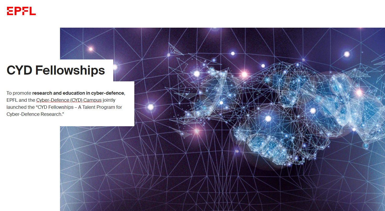 O Instituto Federal Suíço de Tecnologia em Lausanne (EPFL) recebe até 30 de março inscrições para o programa "CYD Fellowships - Um Programa de Talento para Pesquisa de Ciberdefesa", que procura incentivar a formação da próxima geração de pesquisadores líderes em cibersegurança. A chamada abrange três modalidades: Mestrado, Doutorado e Pós-Doutorado. As candidaturas devem ser feitas no site da instituição.
