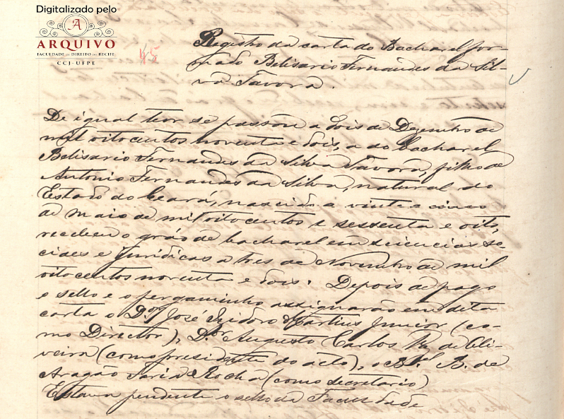 >> Livro de Registro de diplomas de bacharéis (1881 - 1894) – Acervo do Arquivo da FDR
