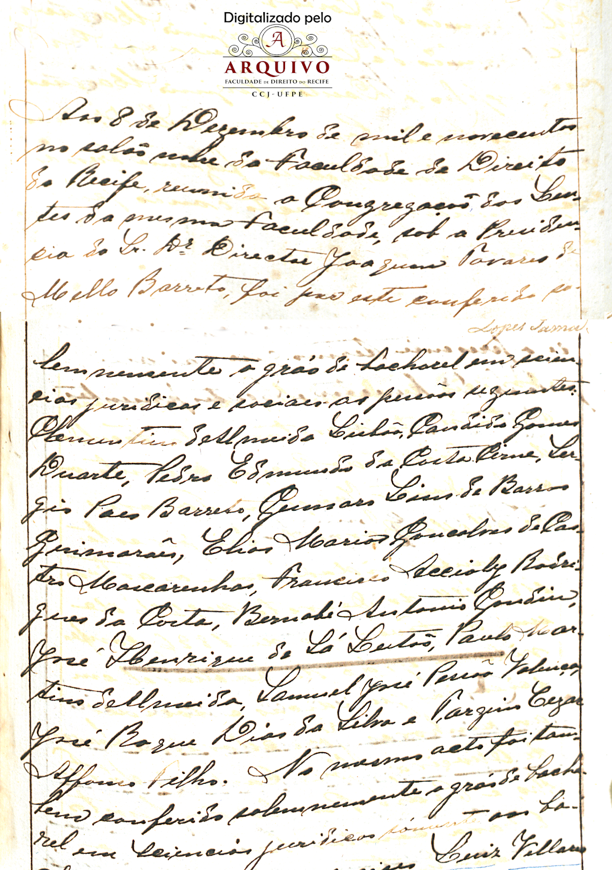 >> Lista geral dos estudantes matriculados na Faculdade de Direito do Recife nos anos de 1893 a 1897