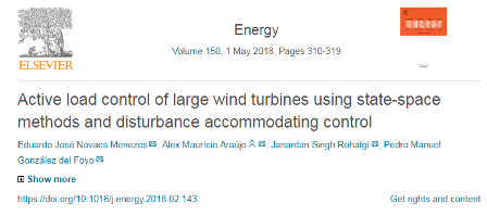 O artigo “Active load control of large wind turbines using state-space methods and disturbance accommodating control” é o segundo trabalho publicado pelo grupo em uma revista A1, em menos de seis meses.