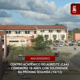 O Centro Acadêmico do Agreste (CAA), em Caruaru, celebra 18 anos de existência com evento comemorativo a ser realizado, na próxima segunda-feira (16), a partir das 9h30, no auditório do Núcleo de Ciências da Vida (NCV). A programação contará com apresentação musical, homenagens e solenidade com gestores da Universidade Federal de Pernambuco (UFPE). O evento será aberto ao público.