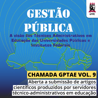 A Equipe GPTAE “Gestão Pública: a Visão dos Técnicos Administrativos em Educação Das Universidades Públicas e Institutos Federais (GPTAE)” , que tem como missão ser uma equipe pluriprofissional e multiterritorial de referência nacional para o incentivo à produção e divulgação científico-tecnológica dos servidores públicos da carreira técnico-administrativa em educação no Brasil, divulga chamada técnica para submissão e seleção de artigos dos técnicos administrativos em educação de universidades públicas (municipal, estadual e federal) e institutos federais para o 9º volume da Coletânea GPTAE.
