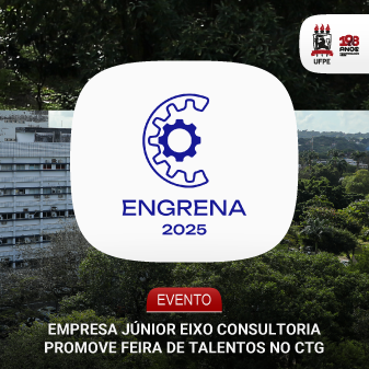 A Eixo Consultoria, empresa júnior do curso de Engenharia Mecânica da UFPE, promove a feira de talentos Engrena. O evento ocorre nesta quarta e quinta-feira (dias 1º e 2), no hall de entrada do prédio administrativo do Centro de Tecnologia e Geociências (CTG), de forma integrada à Semana de Engenharia da UFPE.