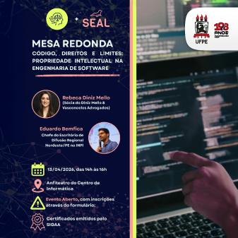 A mesa-redonda vai debater os desafios da propriedade intelectual no desenvolvimento de softwares, discutindo questões legais, éticas e práticas no contexto atual da tecnologia. O evento terá a participação da advogada Rebeca Diniz Mello, sócia do escritório Diniz Mello e Vasconcelos Advogados, e de Eduardo Bemfica, chefe do escritório de Difusão Regional Nordeste do Instituto Nacional da Propriedade Industrial (INPI).